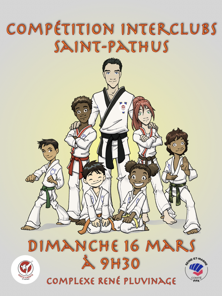 Nous avons le plaisir de vous annoncer qu'une compétition interclubs de Kata aura lieu le dimanche 16 mars à partir de 9h30. Cette compétition est ouverte à tous les membres, enfants et adultes, et sera l'occasion de tester vos progrès et de vivre un moment convivial avec les autres clubs.